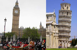 It's all toppling you know. Everything we believed in and trusted lies trampled in the dirt of experience. Bloody good thing too if you ask me! Today the British nation learned that Big Ben is leaning. It's only a small lean - but in 4,000 years it could topple. Apparently the lean of 1.5 inches is perceptible to the naked eye from Parliament Square. Well, I can tell you that my ex husband would not have been able to spot it. He used to think that a spirit level was the whisky department of the supermarket. We had shelves that looked like the doors of a gull wing Mercedes. But they did have a certain charm. Many a dinner guest asked if there had been an earthquake. The completely vertical tower of Pisa just does not have any cachet does it? My suspicion is that all of this stuff is a part of a tourist promo - "see it before it's too late" stunt.